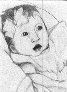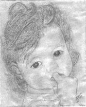 One Person, Head and Chest, Pencil-Drawing